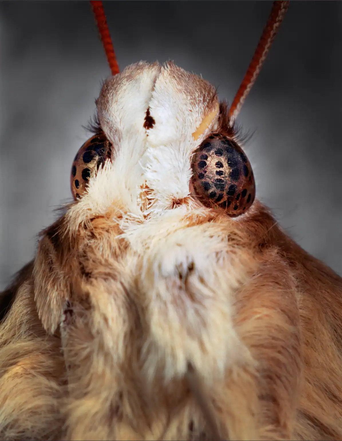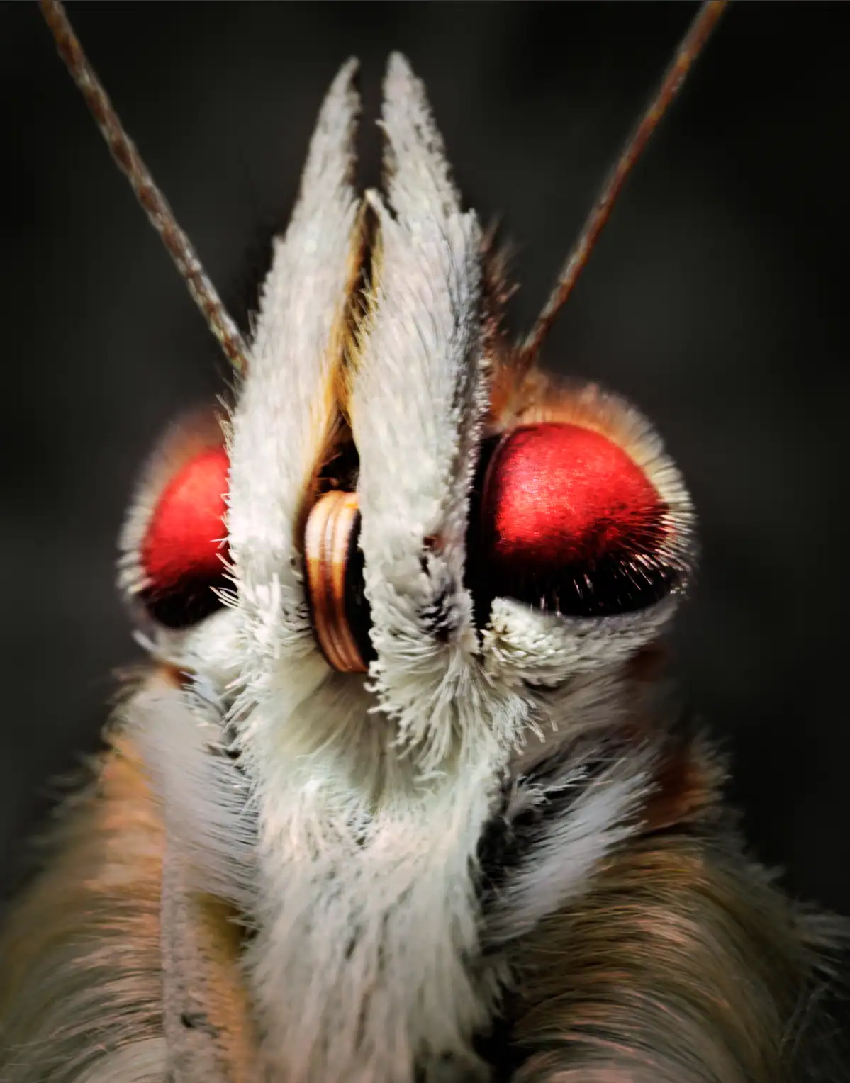 Anthropomorphizing Biological Other, Lepidoptera Portraits explores a reimagining of how we perceive butterflies and moths, moving beyond traditional natural history documentation to anthropomorphize these biological others through the lens of human portraiture. This series employs the aesthetic language and technical approaches typically reserved for photographing people, revealing the remarkable facial expressions and emotional depth of these creatures.