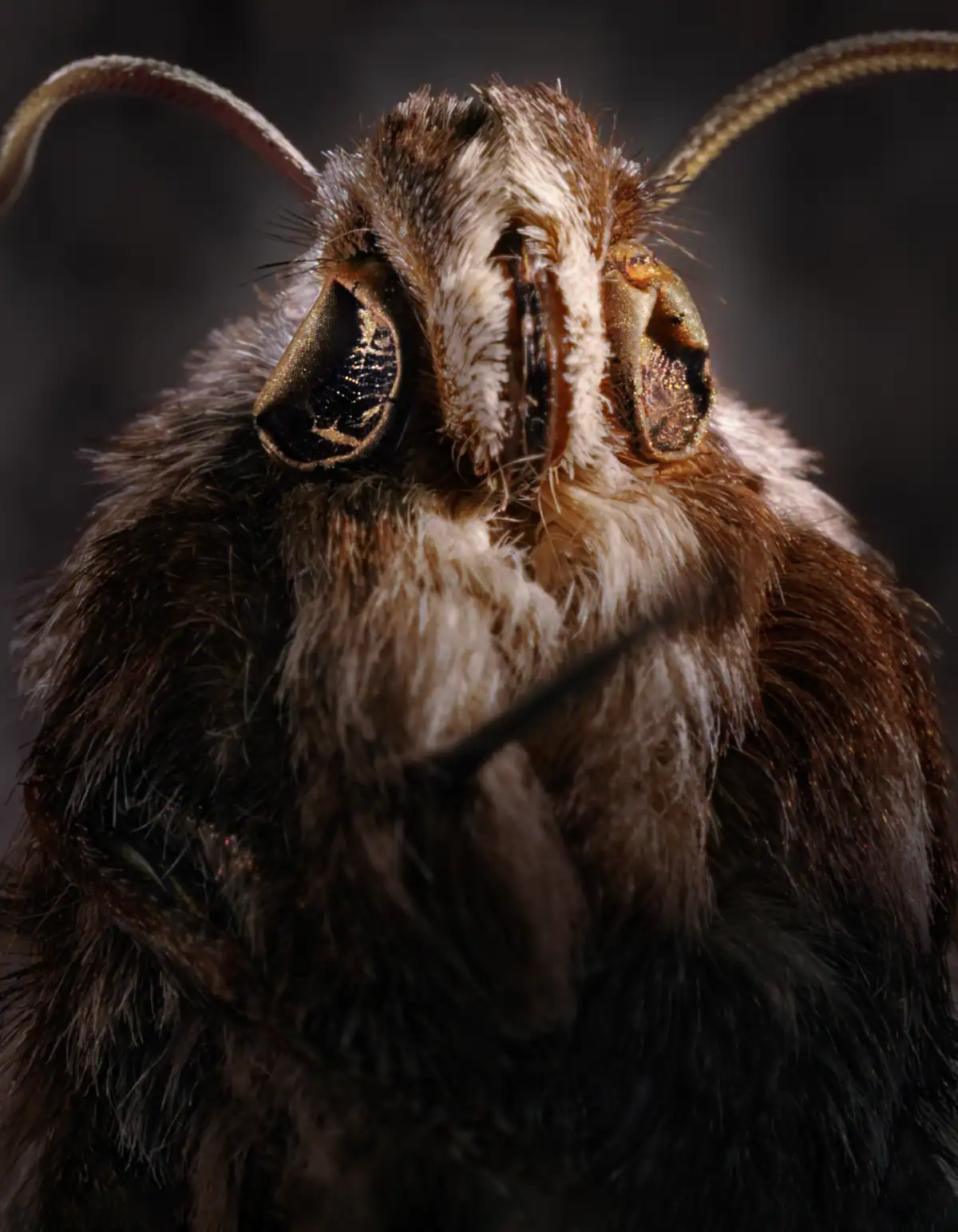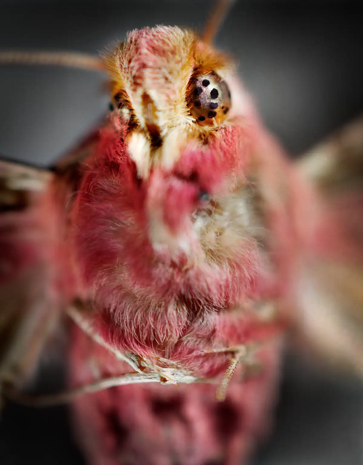 The intricate details revealed through this macro approach—the fur-like textures of scales, the complex architecture of compound eyes, the delicate mechanics of antennae—create encounters that feel genuinely alien yet strangely familiar. This work serves as both artistic exploration and speculative training, preparing viewers for potential future encounters with “insect sapiens” alien species by expanding our capacity for observation beyond the human-centric realm.